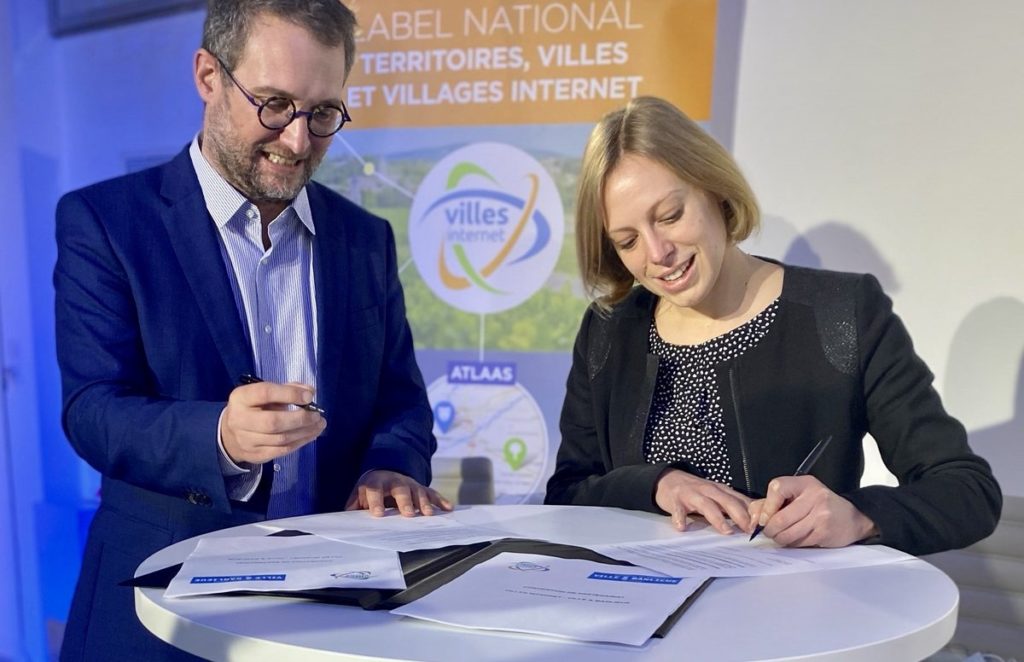 Mathieu Vidal, président de Villes Internet, signait la convention de partenariat avec Anne-Claire Boux, adjointe à la maire de Paris, trésorière de Ville & Banlieue. Un travail conjoint pour réduire…