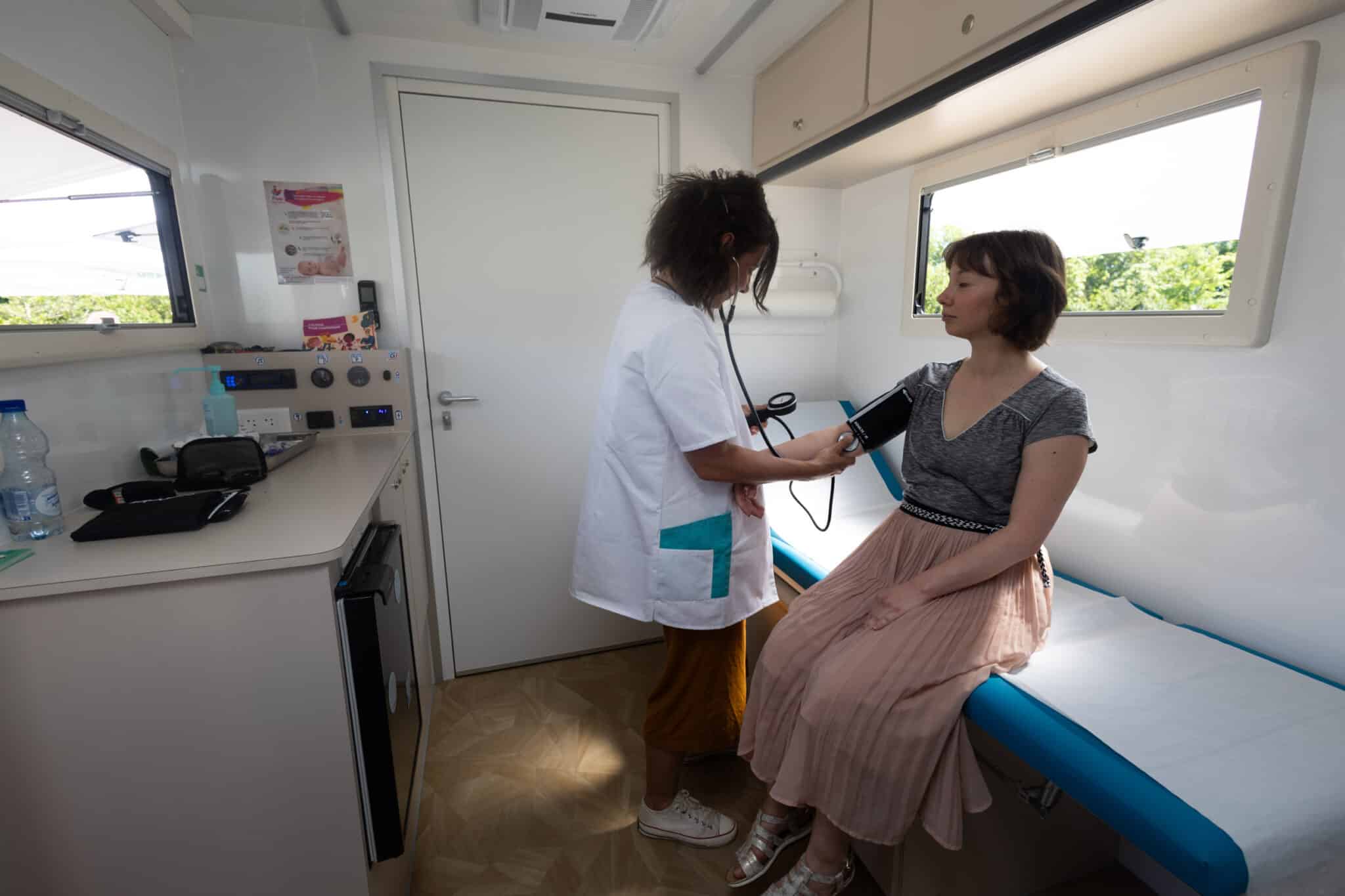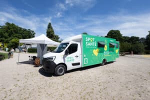 Le second outil est le bus Spot Santé, lancé en 2024. Véritable vitrine mobile de la prévention, il se déplace dans les quartiers et va à la rencontre des habitants sur les marchés, dans les parcs ou au pied des immeubles. À son bord, une infirmière en pratique avancée propose des actions de médiation, des dépistages simples et des entretiens individuels. L’objectif est de rendre l’information accessible, de lever les freins liés à la méconnaissance du système de santé et d’orienter les habitants vers les ressources existantes. En quelques mois seulement, le bus a réalisé une quarantaine d’actions et accueilli plus de 1 000 personnes. Il fonctionne grâce à un large réseau de partenaires associatifs et institutionnels, couvrant des thématiques variées : santé mentale, nutrition, addictions, santé gynécologique, activité physique, vaccination, dépistages.