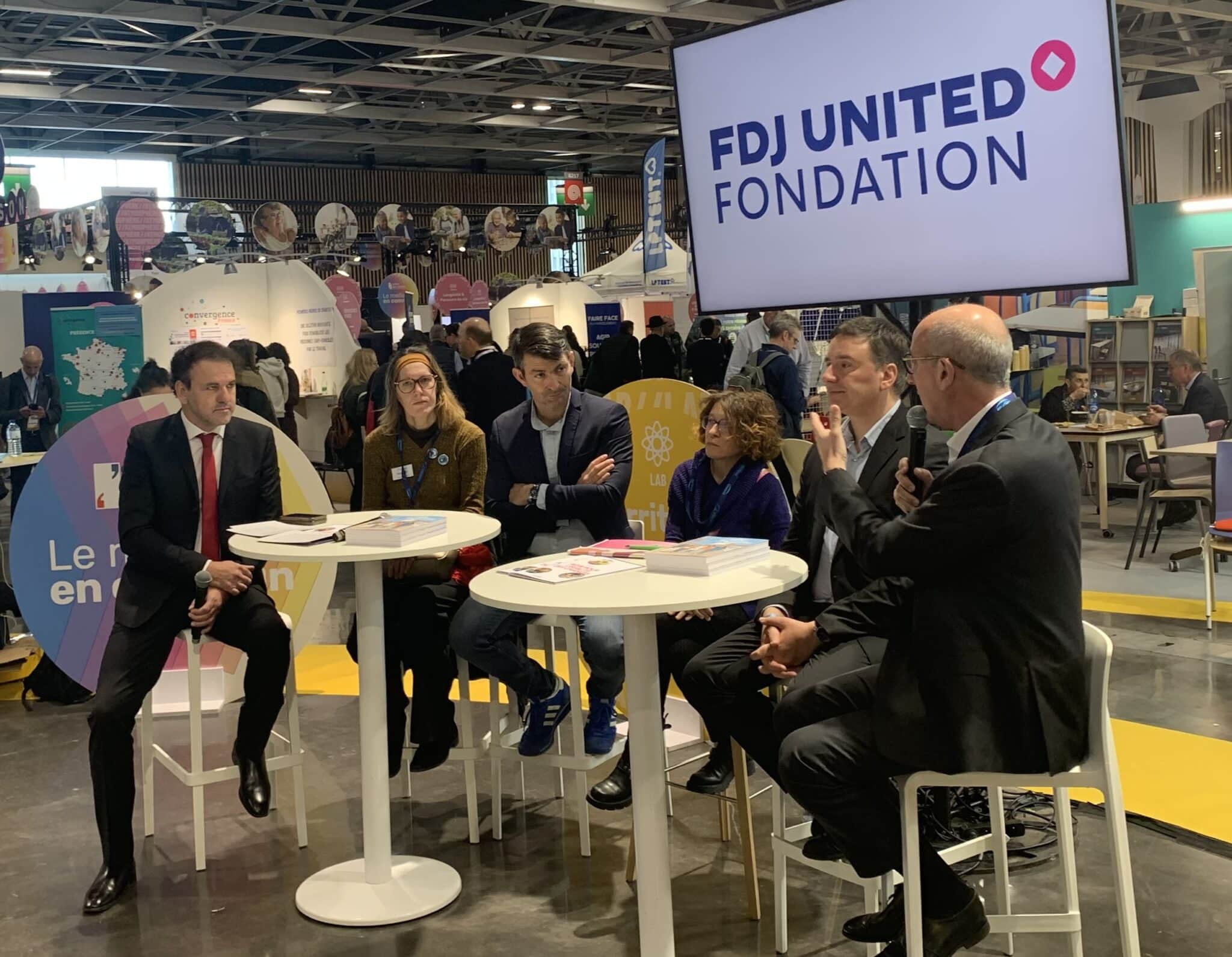 Au cours de la deuxième journée, une conférence a rassemblé Damien Allouch, secrétaire général, Nathalie, habitante d’Épinay-sous-Sénart ayant bénéficié de l’expérimentation Zéro chômeur de longue durée, Stéphanie Vincent, directrice générale de Nouvel’R, Laurent Grandguillaume, président de Territoires zéro chômeur de longue durée, et Charles Lantieri, directeur général délégué de la FDJ United et président de la Fondation FDJ.