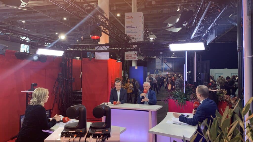 - Le 19 novembre 2025, Gilles Leproust s’exprime sur le plateau de Maire info au Salon des maires et des collectivités locales. ©Ville & Banlieue